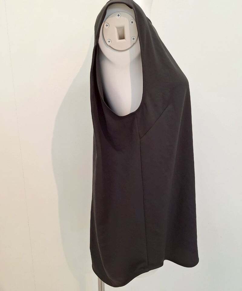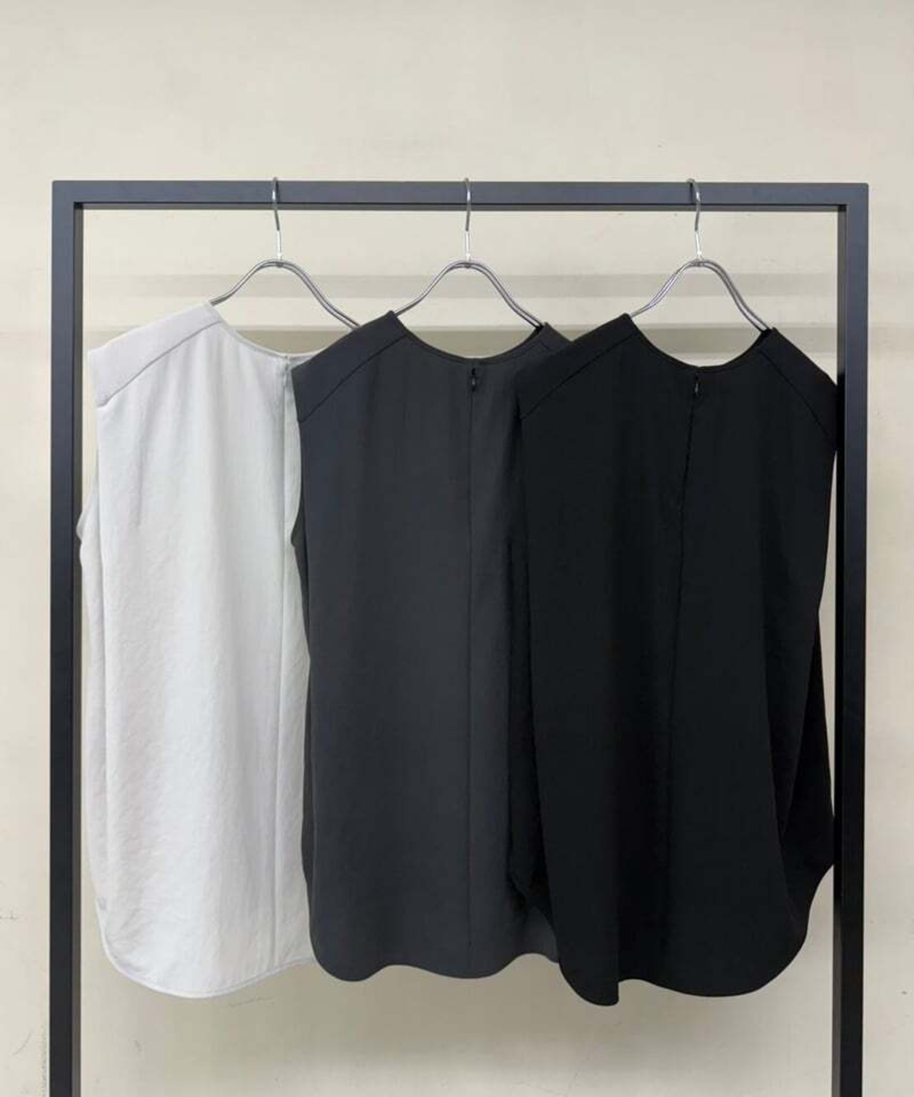 シンプルなノースリーブプルオーバー。きめ細かな表情とソフトな⾵合いで伸縮性に優れたジョーゼット素材を使⽤。夏の暑い日に活躍してくれる涼し気な印象です。後ろ肩にタックを⼊れることで⼆の腕をキレイに⾒せてくれ華奢⾒え効果をプラス。ジャージのような⾵合いとストレッチ性で着⼼地◎シワになりづらくイージーケアなのも嬉しいポイント!