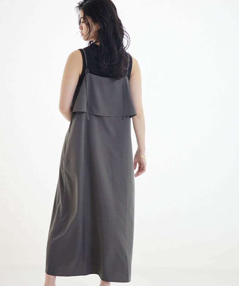 【SUGARROSE(シュガーローズ)のレイヤード風デザインキャミワンピース】 人気の高いペプラムワンピースのキャミワンピバージョンが登場です。 胸元に映えるペプラムのひらひらがアクセントになって大人可愛いスタイルに。 お持ちのトップスと合わせてお洒落に着こなせます。 肩紐アジャスターで身長によって調整も可能で、デニム等の上にレイヤードして着ていただくのもおすすめです。
