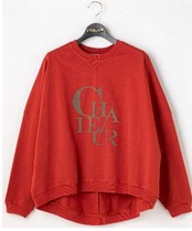 フロッキープリントが目を惹くリラックス感漂うデザイントレーナー。薄手のカットソー生地で、全体的にゆとりを持たせたシルエットは快適な着心地で晩夏から着用可能です。着丈に前後差があるデザインは気になる腰回りをさりげなくカバーし大人の余裕を感じさせます。カジュアルながらも上品な印象で、きれいめのボトムと相性がよく大人のきれいめカジュアルな着こなしにおすすめです。