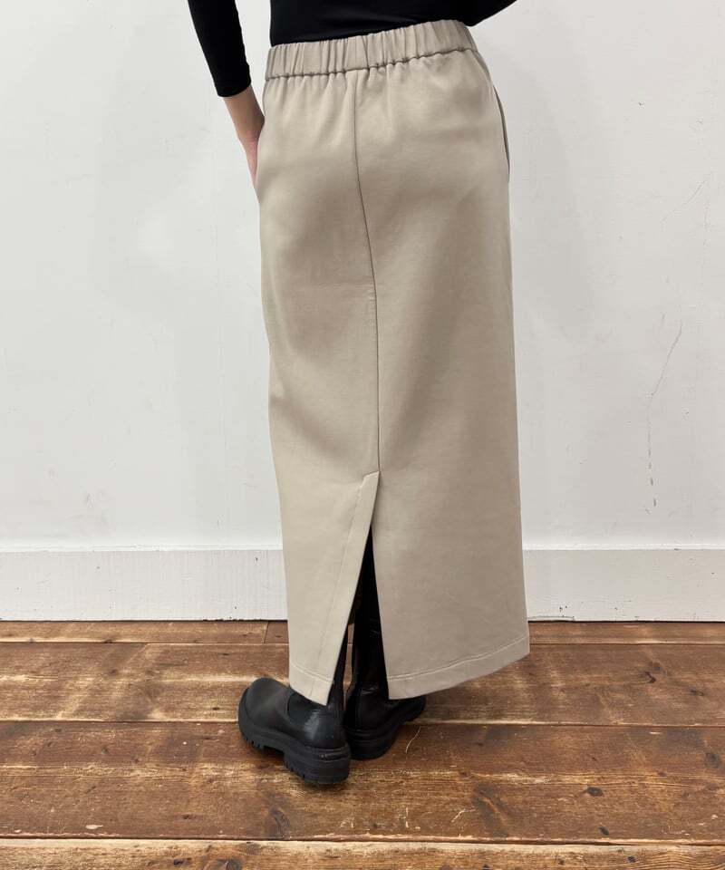伸縮性に優れていて程よく厚みがありボディーラインを拾わない素材を使用したタイトスカート。 バックスタイルにはスリットが入ってあり足さばきがしやすくウエストはぐるりゴム、紐入りで快適な履き心地になっています。 ほどよく厚みがあり、ボーディーラインを拾わないしっりしたダブルフェイスです。 ポリウレタンがはいっており伸縮性にも優れています。