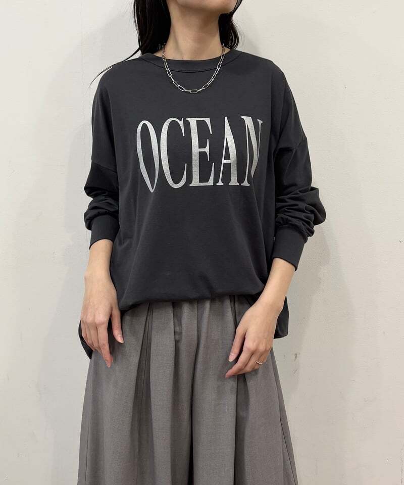 毎シーズン好評の前後2way着用可能なワイドシルエットTshirtです。 存在感のあるロゴはラメプリントになっていて大人っぽく着れるTshirtに仕上げました。 OCEANは英語で海という意味です。