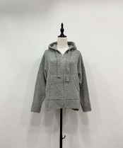 カンガルーポケットにフーディーのデザインだけど柔らかい風合いのニットで仕上げることによってスウェットのフーディーよりもカジュアル感を抑えられ、大人の女性が着やすいように仕上げたニットフーディー。フロントはジップ仕様で、羽織りとしても着用できます。 大人気の定番で出してる素材です。ホイップのようにふんわり柔らかい風合いでウール混なのにチクチク感がなく暖かいのが特徴です。