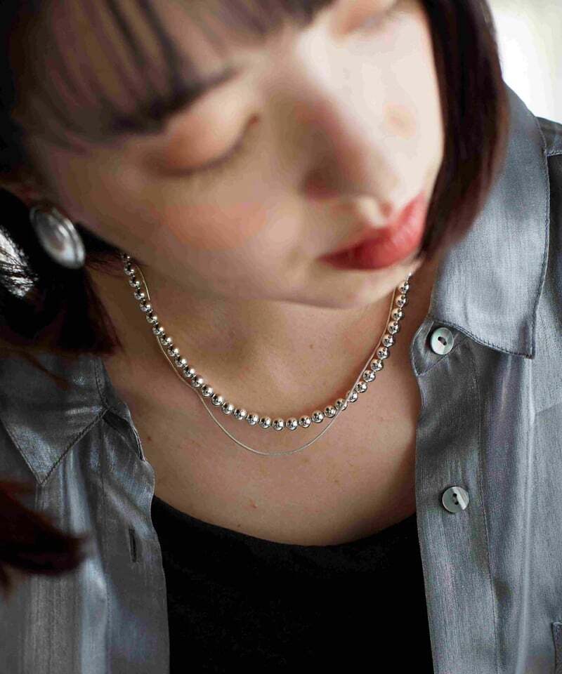 Nothing and Others / Dot Necklace メタルボールをチェーン状に、丸線の華奢なスネイクチェーンと合わせた2連ネックレス。 程よいボリューム感のネックレスは、オンオフ問わず活躍するアイテムです。 “Nothing And Others”ロゴ入りのマンテルパーツもポイント。 ■品番 C41012090 ■付属品 “Nothing And Others”ブランドロゴ入りRecycled Cotton巾着 Recycled Cotton(リサイクルコットン)は、一度、製品になった洋服や鞄、未使用のまま廃棄された布地を回収し新しい糸を織り直し再生したキャンバス生地です。 ■サイズ 全長45cm / 22g ■シルバー925プレーティング 銀製品同様、時間が経つにつれて黒ずんできますが、その場合はクロスなどで優しくお拭き取りください。 プレーティングですので、付けたまま入浴や、水仕事などはおやめください。 ■一般的に金属アレルギーを起こしやすいと言われている物質(ニッケル、クロム、マンガン、コバルト)を殆ど含んでおりません。