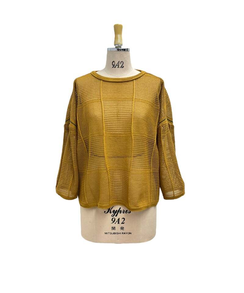 【ayane】 816318 格子柄メッシュ編ニット
