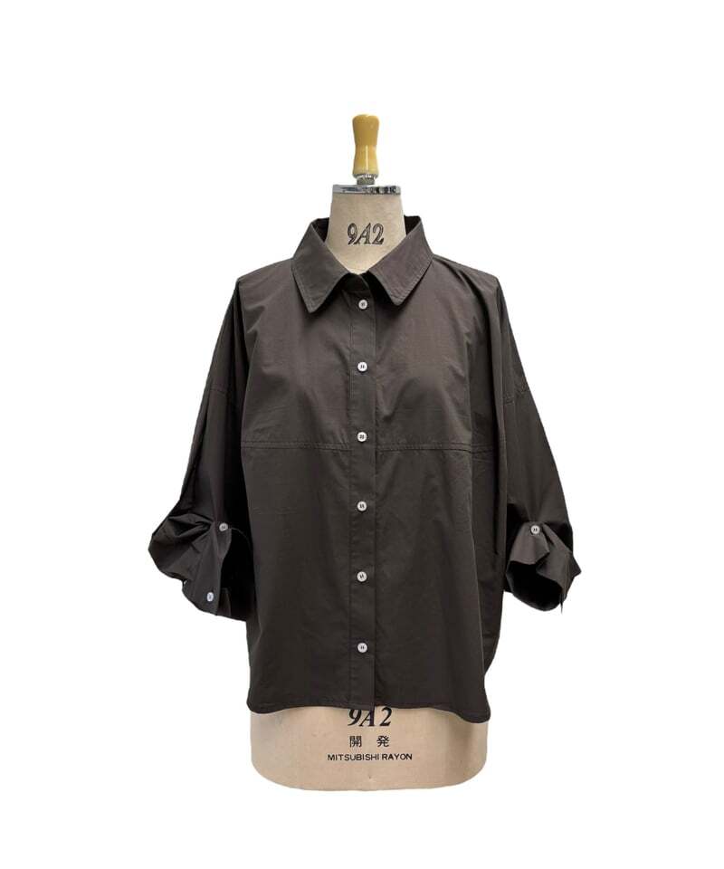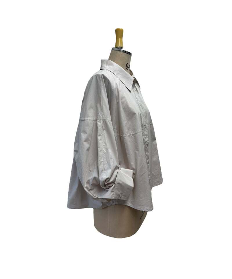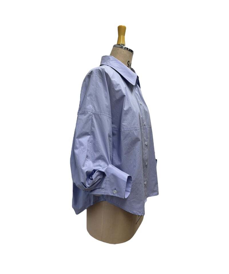 コットンタイプライター素材を使用。立体的なフォルムに袖をボタンで吊り上げることでより立体的で可愛いシャツの完成です。 張り感のあるタイプライター素材ならではのシルエットが構築的でモードな印象に。 ゆったりしたサイズ感なので 安心してオシャレに着こなしていただけます。